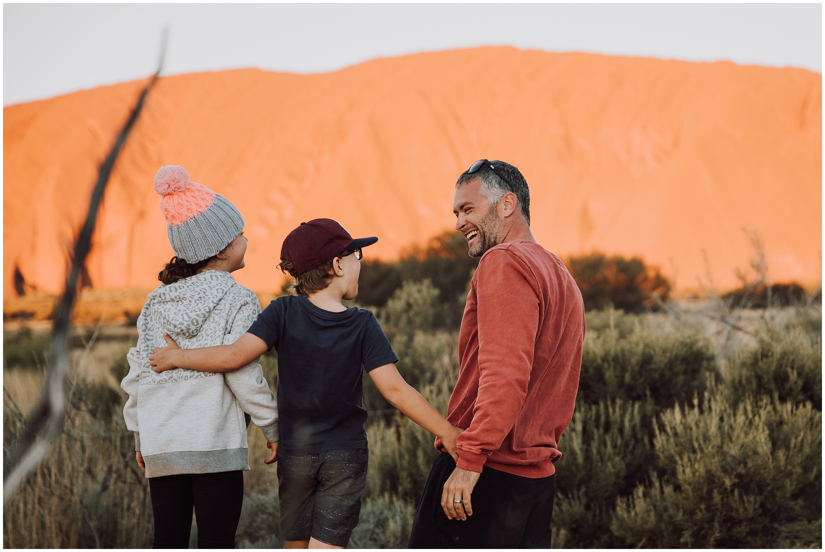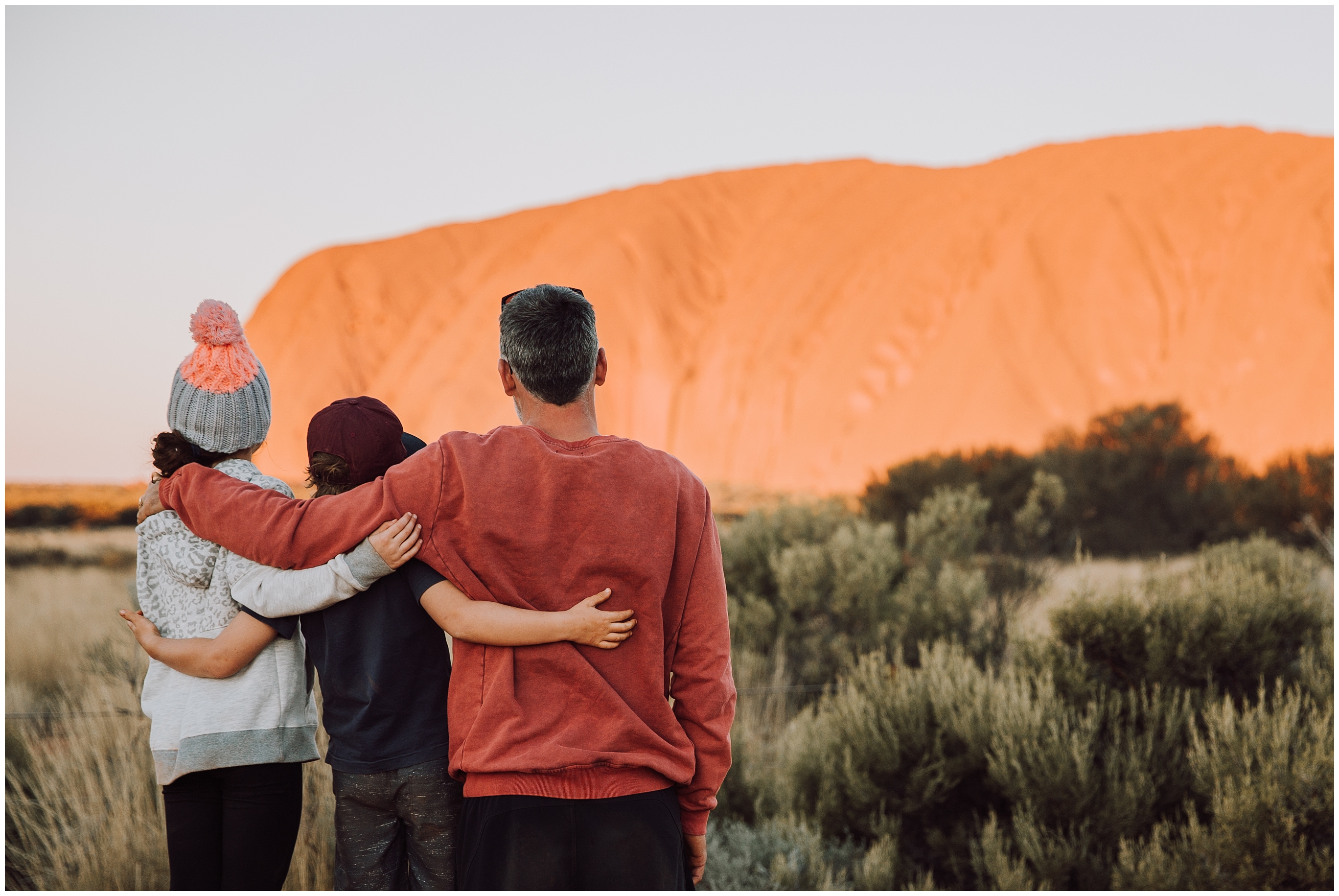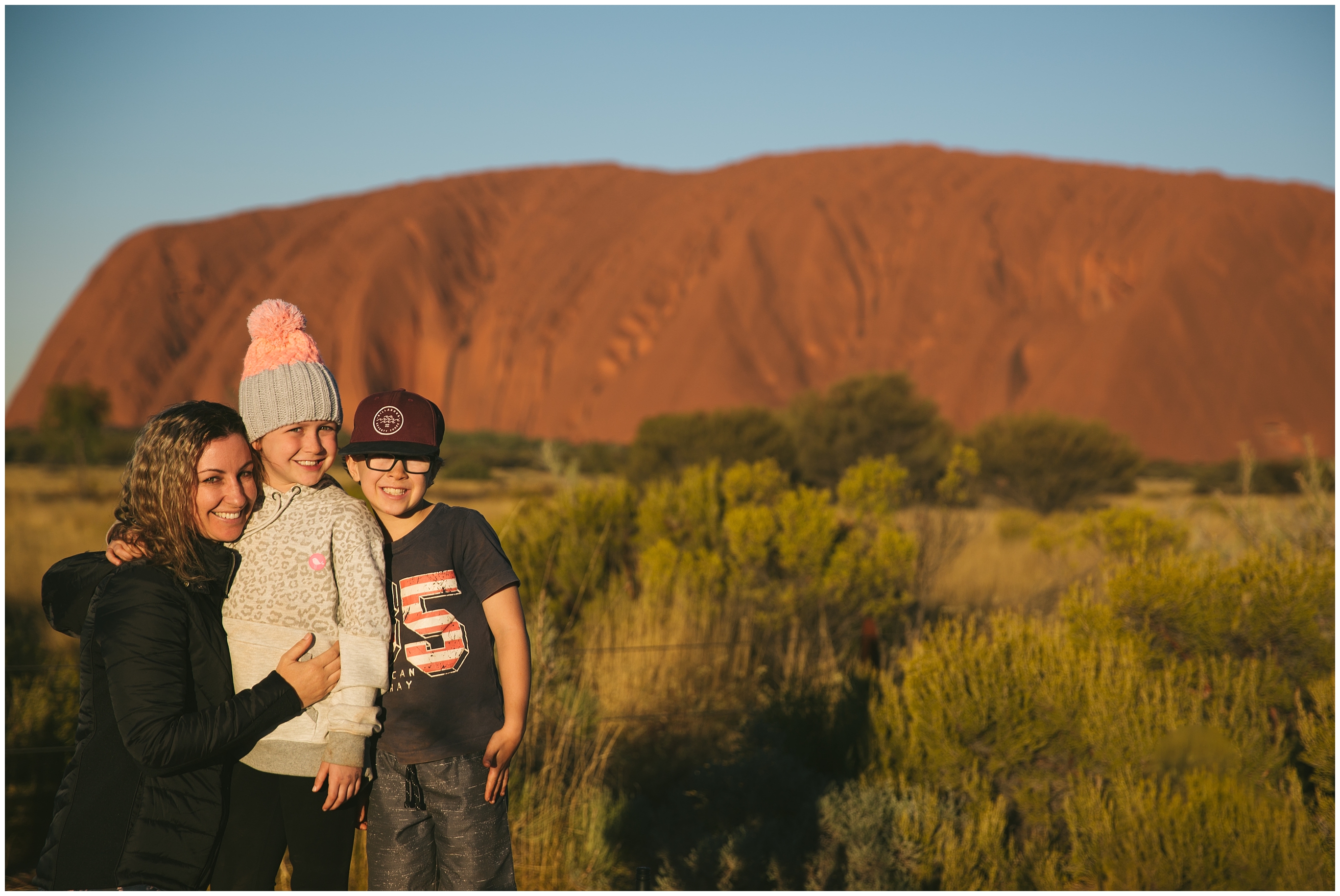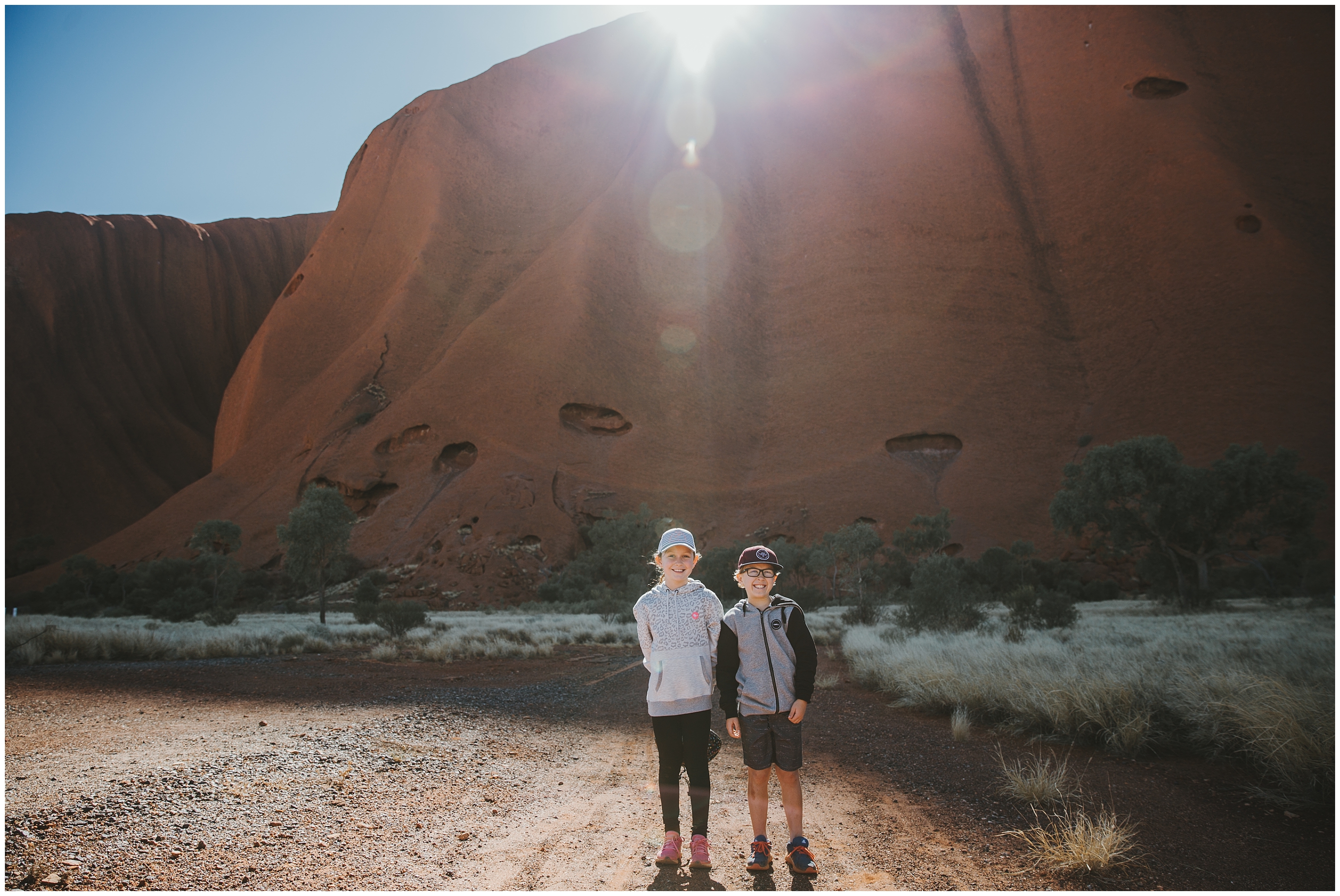 We were up early day 6 to start the long drive to Uluru from Coober Pedy. Never get sick of sunrises and sunsets out here. Day 7 was a chilly morning (‘feels like 0.7 degrees, temp 2.3 degrees’) Chris got up and went for a run. As far as I’m concerned that’s as good as an excuse as any not to exercise! So far we have been surprised that we havn’t run into many families travelling, a heap of grey nomads (and just quietly we may fit into that category too). We rode bikes around Uluru and it was a flat ride of 10.6km. It was a great way to see the beauty of the rock.Â