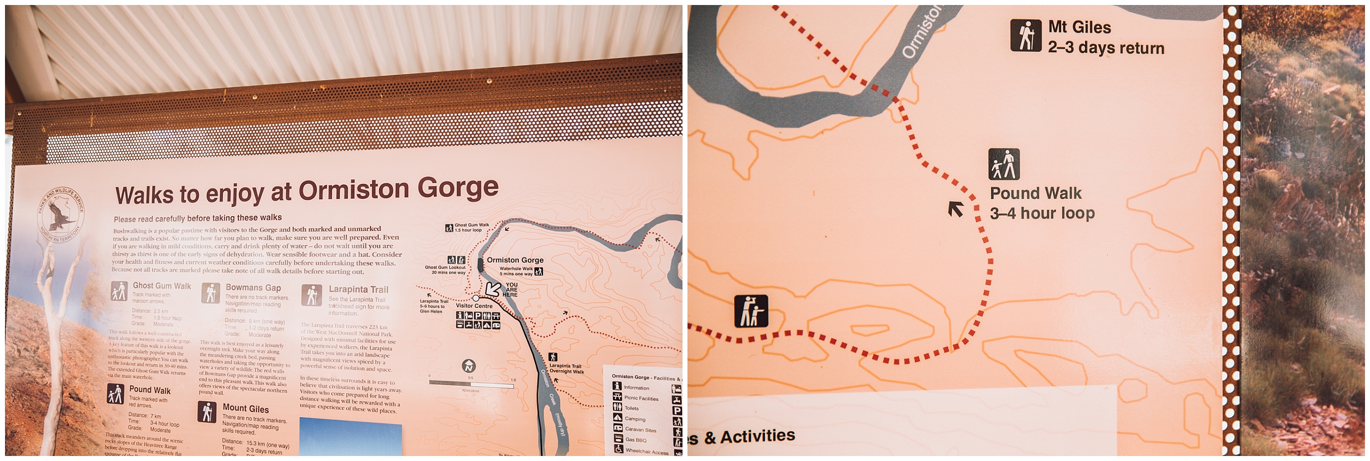 Night 9 & 10 we were lucky enough to score a site at Ormiston Gorge Campground as we got there later than we thought. The option here were a 5 minute gorge walk, a half hour walk to the lookout or a 3-4 hour 7km walk. The kids didn’t think twice about it, onwards and upwards for the 7km! Successful gorgeous walk BUT Harry learnt the hard way the shorts NOT to wear on long walks for chafing issues!