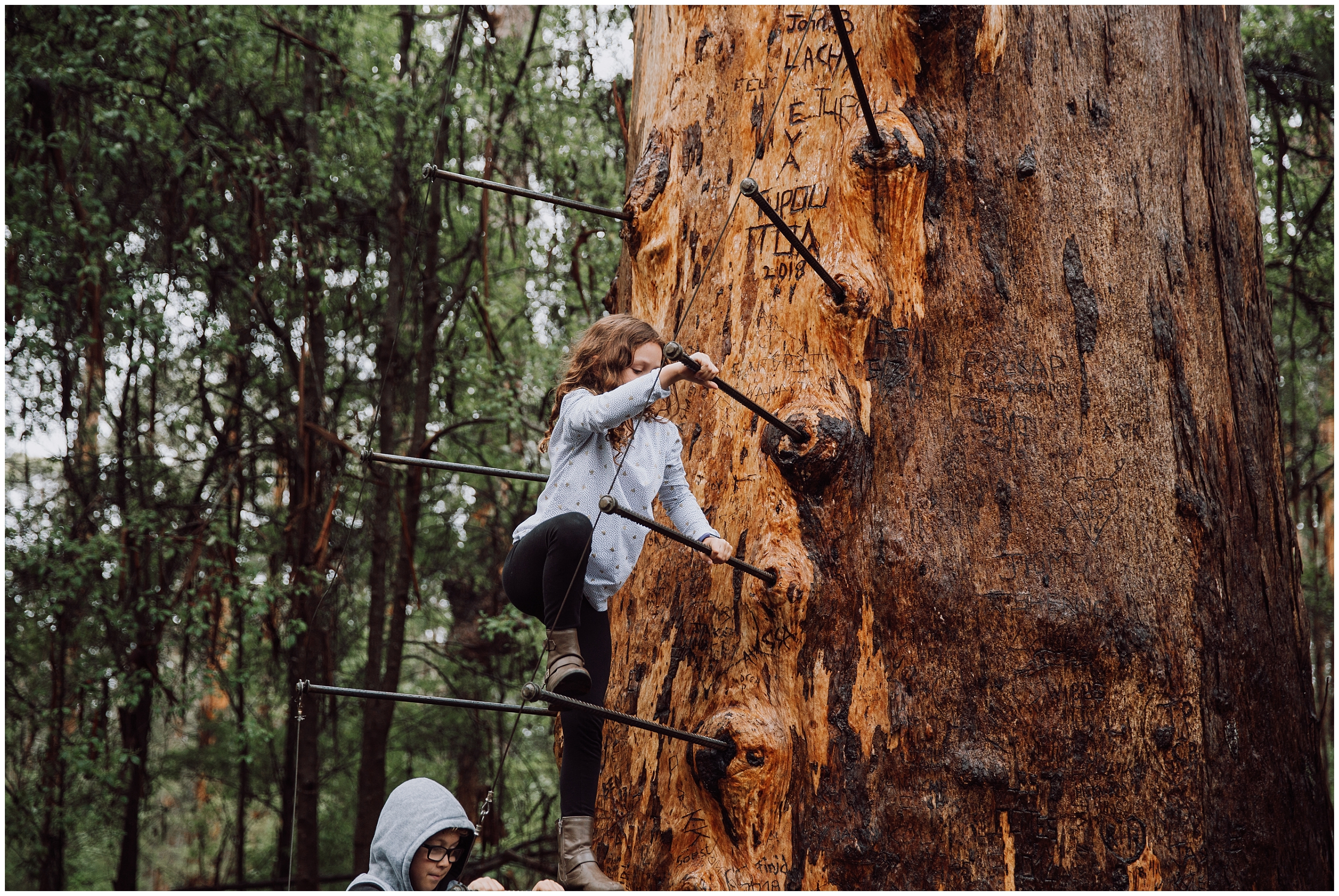 Day 71: We said our goodbyes to Mum and dad as they head back to Perth.! We head from Margaret river down to Hamelin Bay and Pemberton. I loved Perth but being back in these little towns is great! And well ,after the week with Mum and dad and eating out for morning tea, lunch, afternoon tea and dinner it’s back to attempting to stay within the budget!! Mum has gone home to what she calls ‘dry august’. I think that might be taking it a little far on mine and chris’ behalf though! Hamelin Bay was gorgeous, well I could see how it would be gorgeous on a nice day. Weather, wind and rain has been a shocker so we viewed the bay from the comfort of the BT-50 to avoid being blown away! Then headed to climb one of the famous Karri trees in the Pemberton area. And when I say climb, I mean about 3m up a 52m tree. These trees were used for spotting fires back in the 1930’s-40’s. I’m not scared of heights BUT you are allowed to climb these trees without harnesses! The amount of things we have commented on the things you are allowed to do on this trip that there is no way in NSW you would be able to do!